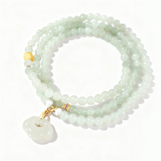 和田玉多圈平安锁项链A0930