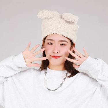 可爱小兔羊羔绒保暖冬帽