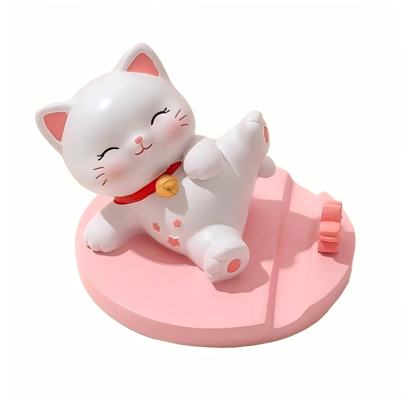 粉底萌系铃铛猫手机支架
