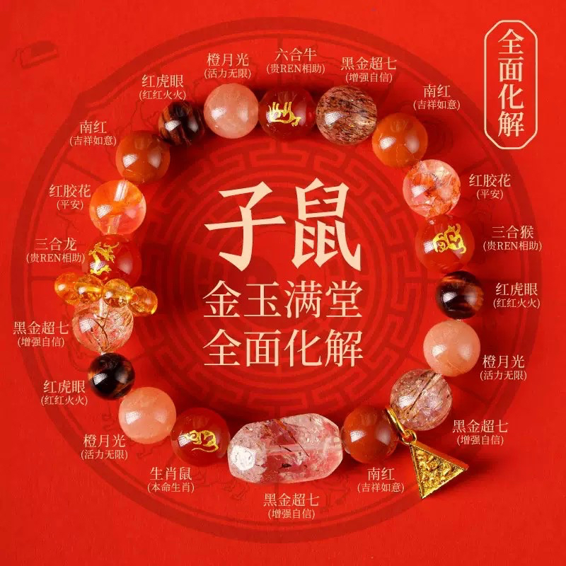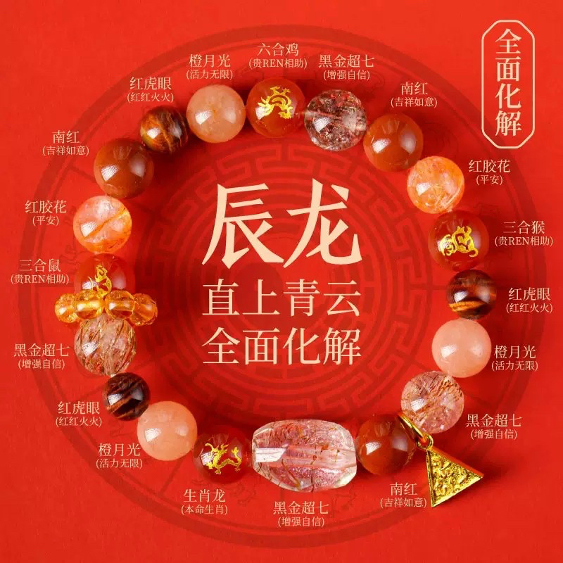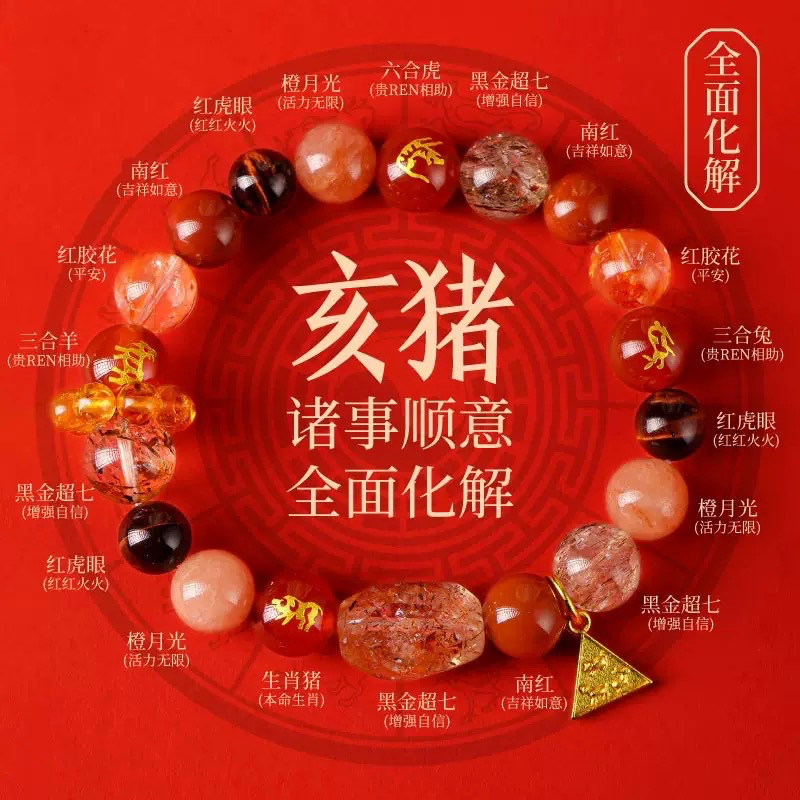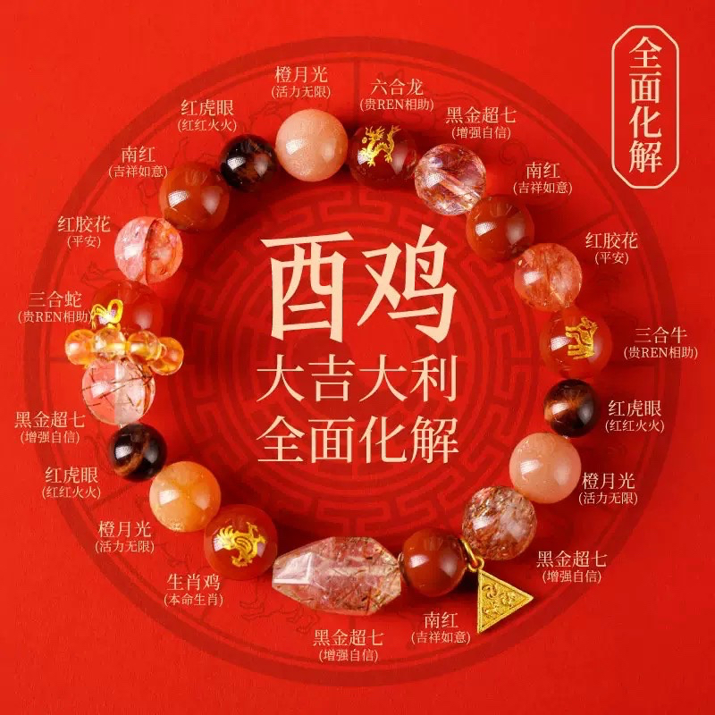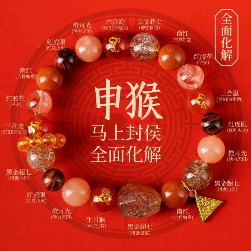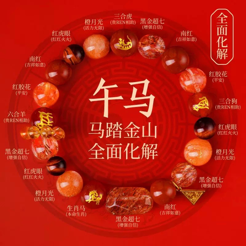 马年贺岁 十二生肖水晶手串