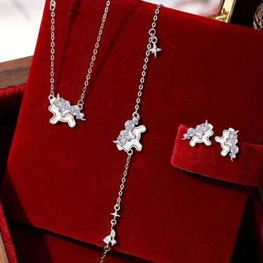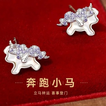 原创奔跑萌马毛衣链手链耳钉组合