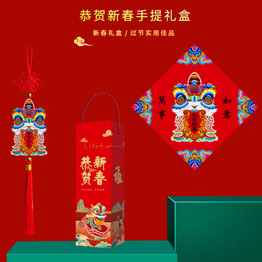 福人福地 35#恭贺新春手提礼盒套装舞狮款