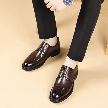 卡堡罗 透气布洛克雕花头层牛皮系带皮鞋2175-1
