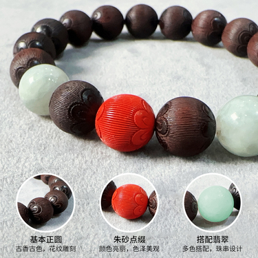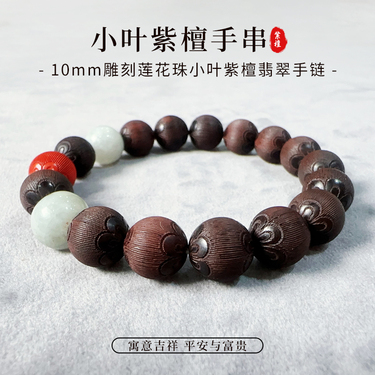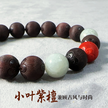 天然翡翠朱砂小叶紫檀手串10mm