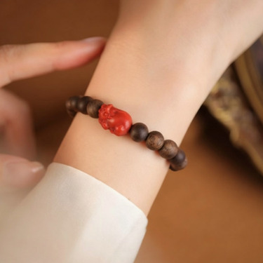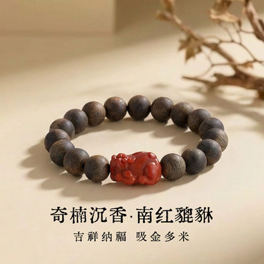 南红貔貅送福沉香木手串